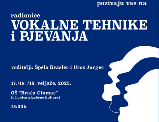 Od 17. do 19. veljače 2025. godine, od 18.00 do 21.00 sat u Osnovnoj školi “Braća Glumac” Lastovo, održali smo radionice vokalne tehnike i pjevanja s gostima voditeljima Špelom Drašler i Urošom Jurgecom te domaćina voditelja Branka Nikolića. Radionice…