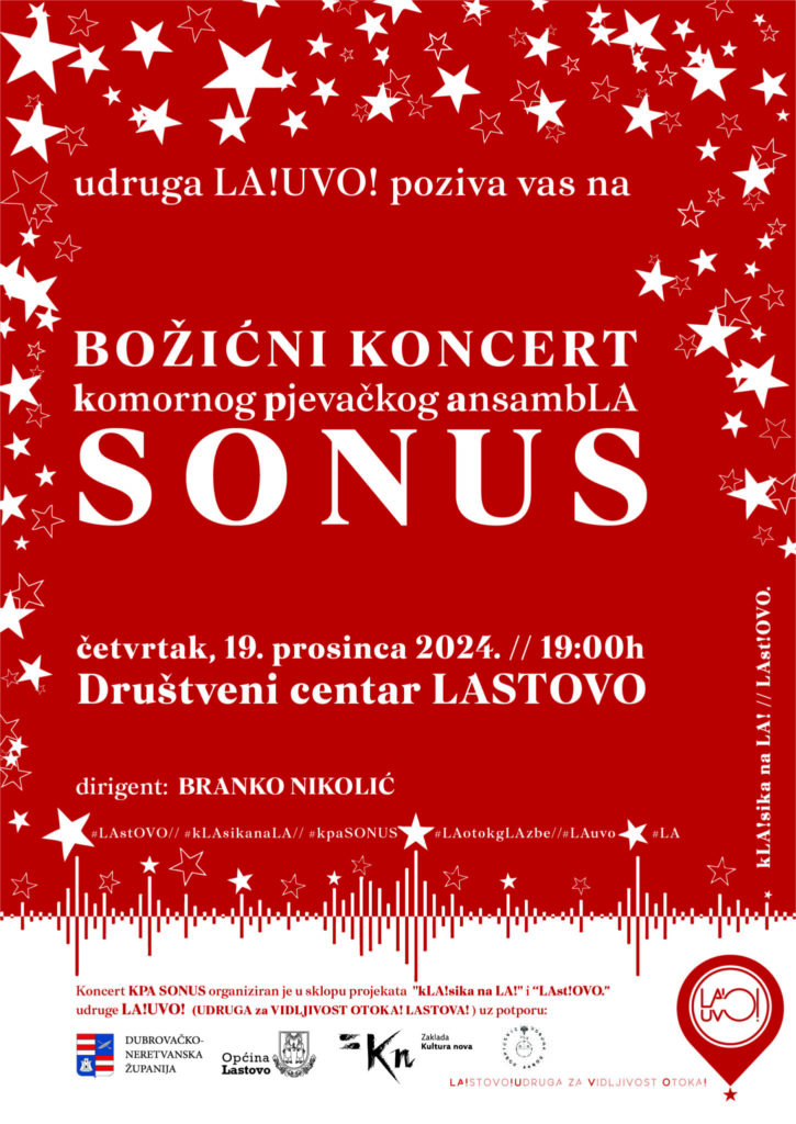 Koncert KPA SONUS organiziran je u sklopu cjelogodišnjeg programa udruge LA!UVO! pod nazivom “LAst!OVO.” i projekta “kLA!sika na LA!” uz potporu Dubrovačko-neretvanske županije, Zaklade Kultura nova i Općine Lastovo.