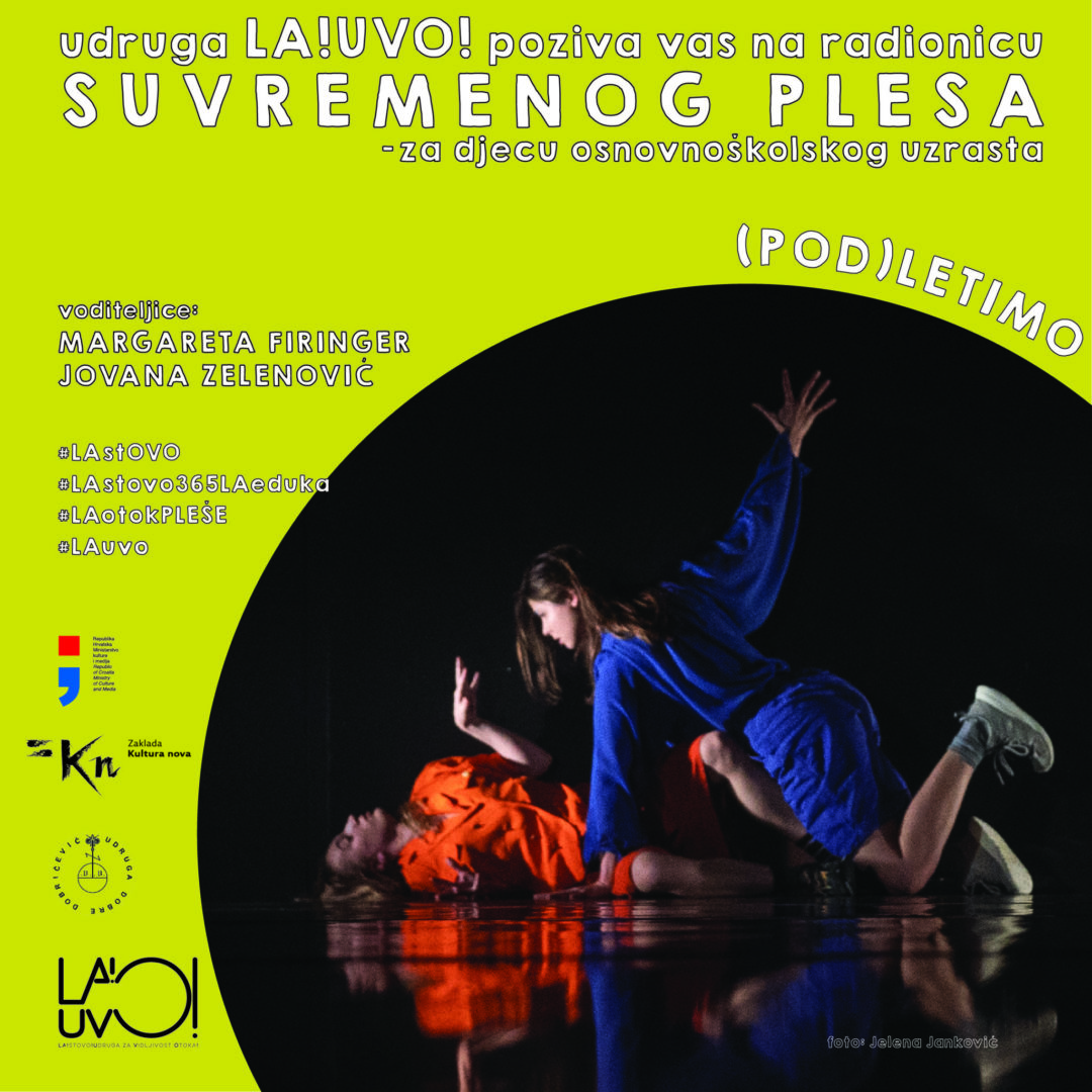 U četvrtak, 06. veljače 2025. godine, od 13.00 do 14.30 sati u Društvenom centru Lastovo, održali smo radionicu suvremenog plesa za djecu pod nazivom “(POD)LETIMO” u sklopu istoimene umjetničke rezidencije Margarete Firinger i Jovane Zelenović, a s ciljem da se kroz igru, kreativnost i ples razvije osjećaj za timski rad, ravnotežu i povjerenje u sebe i druge.